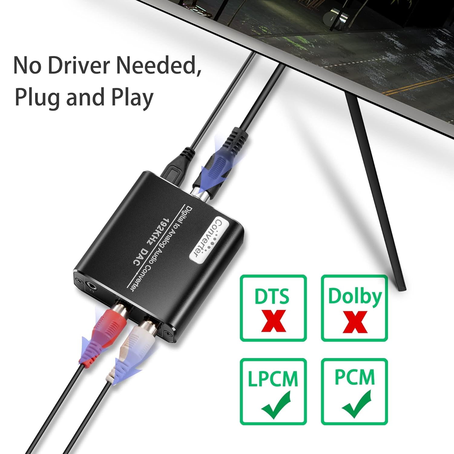 192KHz Digital to Analog Audio Converter, Digital SPDIF Optical to L/R RCA Converter, Toslink Optical to 3.5mm Jack Adapter
