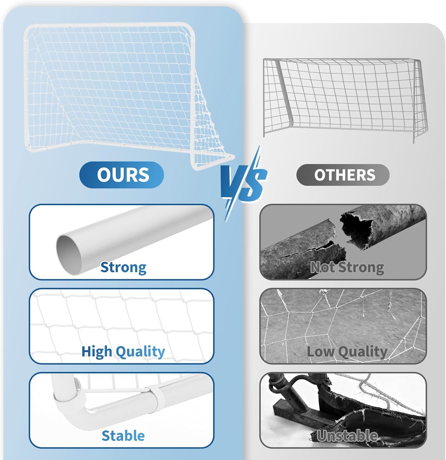 Professional Soccer Goal Net – Fast Setup with Net & Ground Stakes – Perfect for Backyard, Training & Competitive PlayDurable, Portable & Built to LastTake your soccer skills to the next level with this soccer goal, designed for players. Whether you're practicing in the backyard, training for a league, or just having fun with friends, this sturdy yet portable goal delivers professional-grade performance at home.