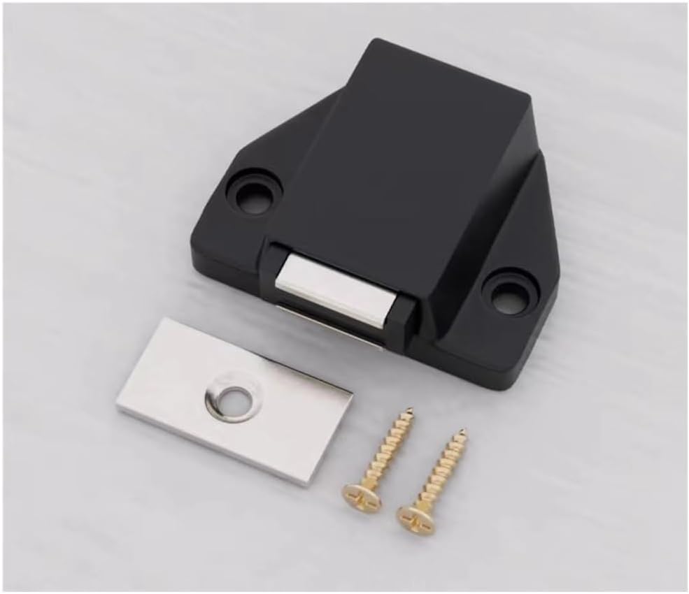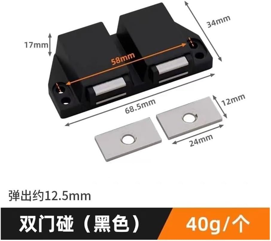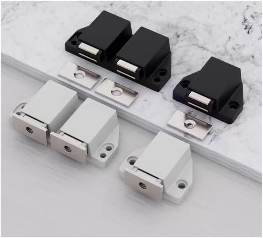 SpecificationMaterial: ABSSize: As shown in the figureColor: silverOpen/close type: spring loaded, press to open and closePurpose: For furniture doors made of wood or PVCPackage Includes:2 x magnetic door catch