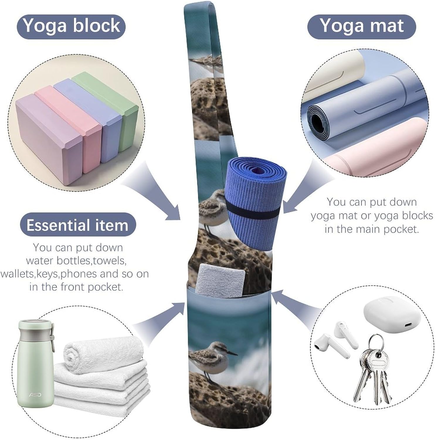 Can be used as a yoga mat bag, gym bag or Pilates bag, it is an ideal choice for yoga lovers, parents who balance fitness and travelers who need a reliable yoga gym bag Owning an excellent Bird Perching on The Rock printed Travel yoga gym bag can make your yoga practice easier. You don't have to worry about dirt, dust and damage because your yoga mat will be protected, and after the yoga class, just throw everything into the yoga bag and you're ready to go