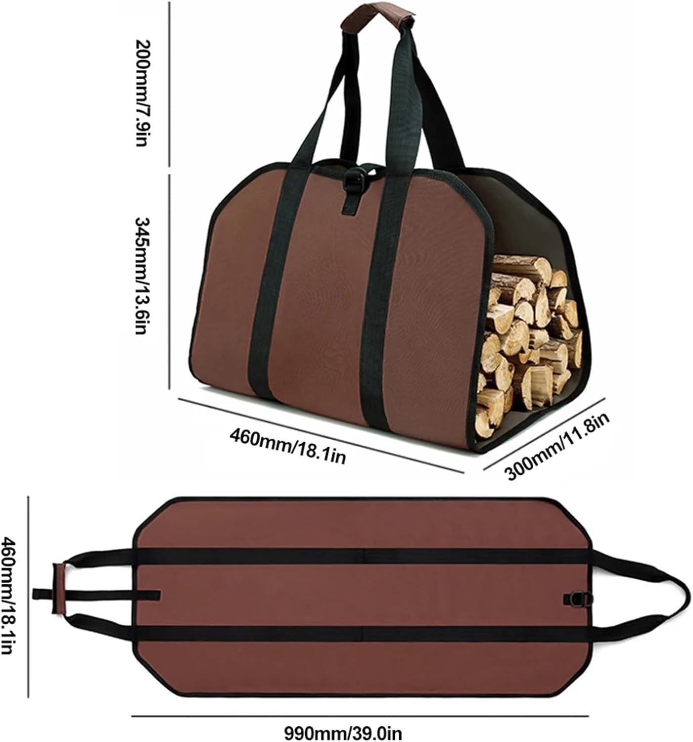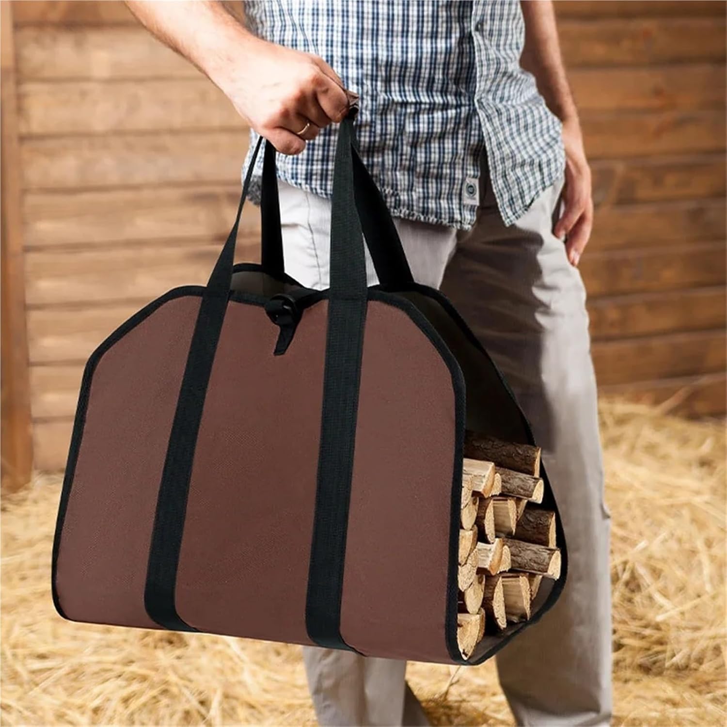 Firewood Bag Carrier Fireplace Tote Storage Bag Water Resistant Firewood Log Carrier Tote Large Capacity Fireplace Stove AccessoriesFeature: 1. Versatile and Convenient: Our sturdy tote bag is perfect for carrying firewood, walking sticks, and branches. It features a long handle and generous size, allowing you to transport beautifully sized birch logs without the need for multiple trips.2. Durable and Resilient: Made from polyester material, our tote bag is scratch-resistant, stain-resistant, and wear-resistant. The reinforced handles ensure superior durability and increased load-bearing capacity.3. Easy Carrying Options: Our tote bag features a convenient handheld strap for easy single-person carrying, while it can also be used for collaborative transportation by two people.4. Multi-Purpose Functionality: More than just a firewood carrier, our tote bag is versatile and can be used for tools, picnics, camping, packaging, and more, serving as a stylish and practical solution.5. Long-lasting Durability and Easy Maintenance: Our tote bag is built to last and easy to clean. Even in harsh winter conditions, it remains tear-resistant, ensuring years of reliable use.Specification: Type: Tool Handbag Material: Polyester Model Number: Firewood Carrier Bag Material quality: Expanded size: Approximately 990.00x460.00x10.00mm (38.98x18.11x0.39inch)Noties:1. The real color of the item may be slightly