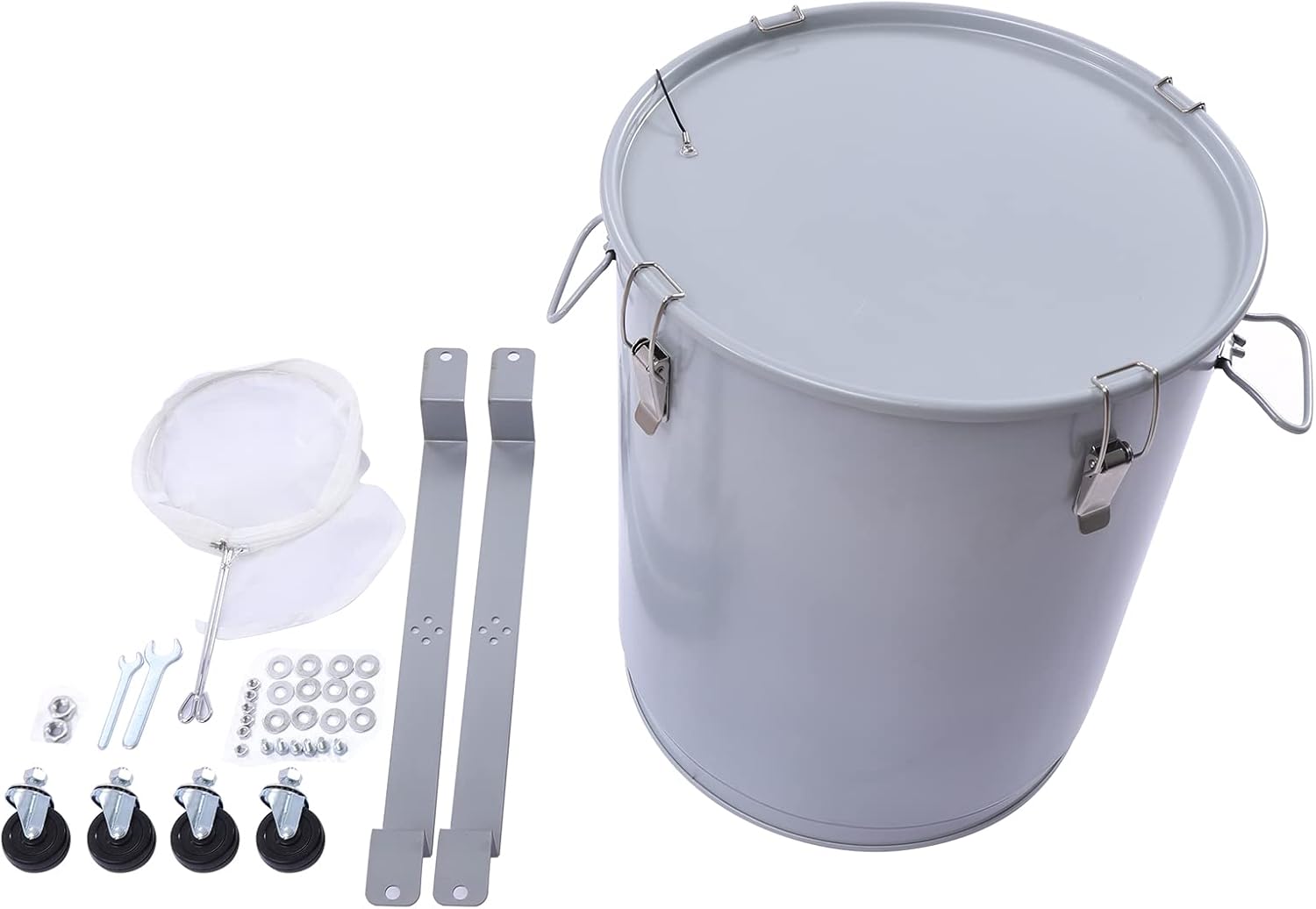 Description:If you use a fryer in your kitchen on a regular basis, it's important to have a way to safely and efficiently store and transport used oil. This 16-gallon fryer grease bucket is a great solution. It is great for storing and moving oil. Sealed well, it makes moving oil easy, safe, and efficient!Details:Hanging Rope: The hanging rope design connects the lid to the bucket, reducing the interference of finding a place to put the lid or picking it up from the ground while also allowing you to not worry about losing the lid.Filter Bag: We equip you with a filter bag so that you can easily filter suspended matter, and particulate matter from the oil.Locking Clips: The 4 locking clips are designed to secure the lid so that it has a better seal and ensure that internal substances do not spill easily.Application:It can be used in restaurant kitchens, fast food chains, hot pot restaurants, bars and grills, cafeterias and public canteens, etc.Specification:Color: SilverShape: Open-mouthBucket Material: SteelCushion Ring Material: RubberHandle Material: PlasticSurface Treatment: Eco-friendly CoatingNumber of Lock Clips: 4Number of Wheels: 4Capacity: 60L/ 16Gal/ 123lbsDiameter of Grease Bucket: 39.5cm/ 15.6inHeight of Grease Bucket: 48cm/ 18.9inThickness of Grease Bucket: 0.07cm/ 0.0276inPackage Size: 42*42*55cm/ 16.54*16.54*21.65inNet Weight: 8kg/ 17.64lbsGross Weight: 8.5kg/ 18.74lbs Package Included:1* Fryer Grease Bucket1* Filter Bag4* WheelsAll Needed Accessories