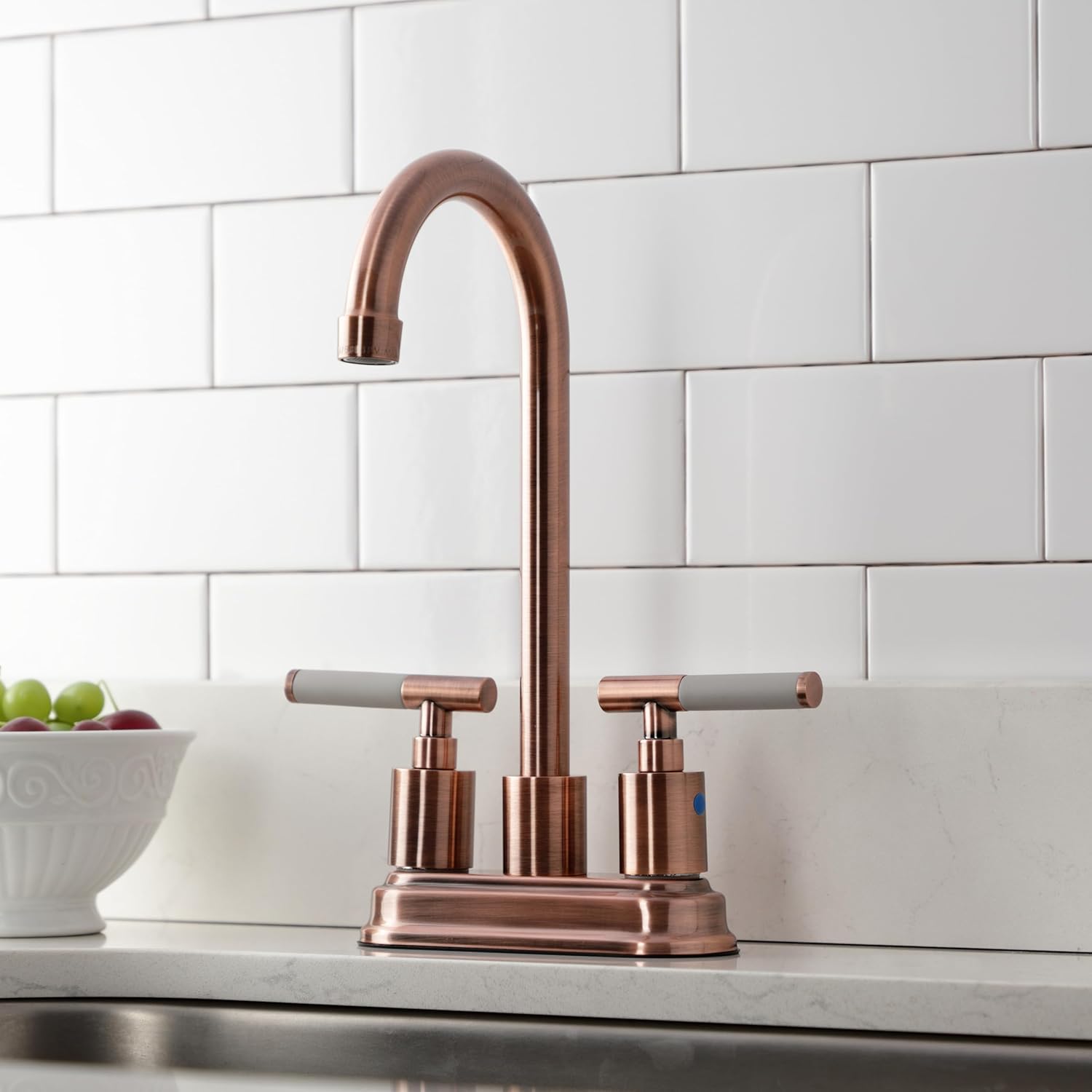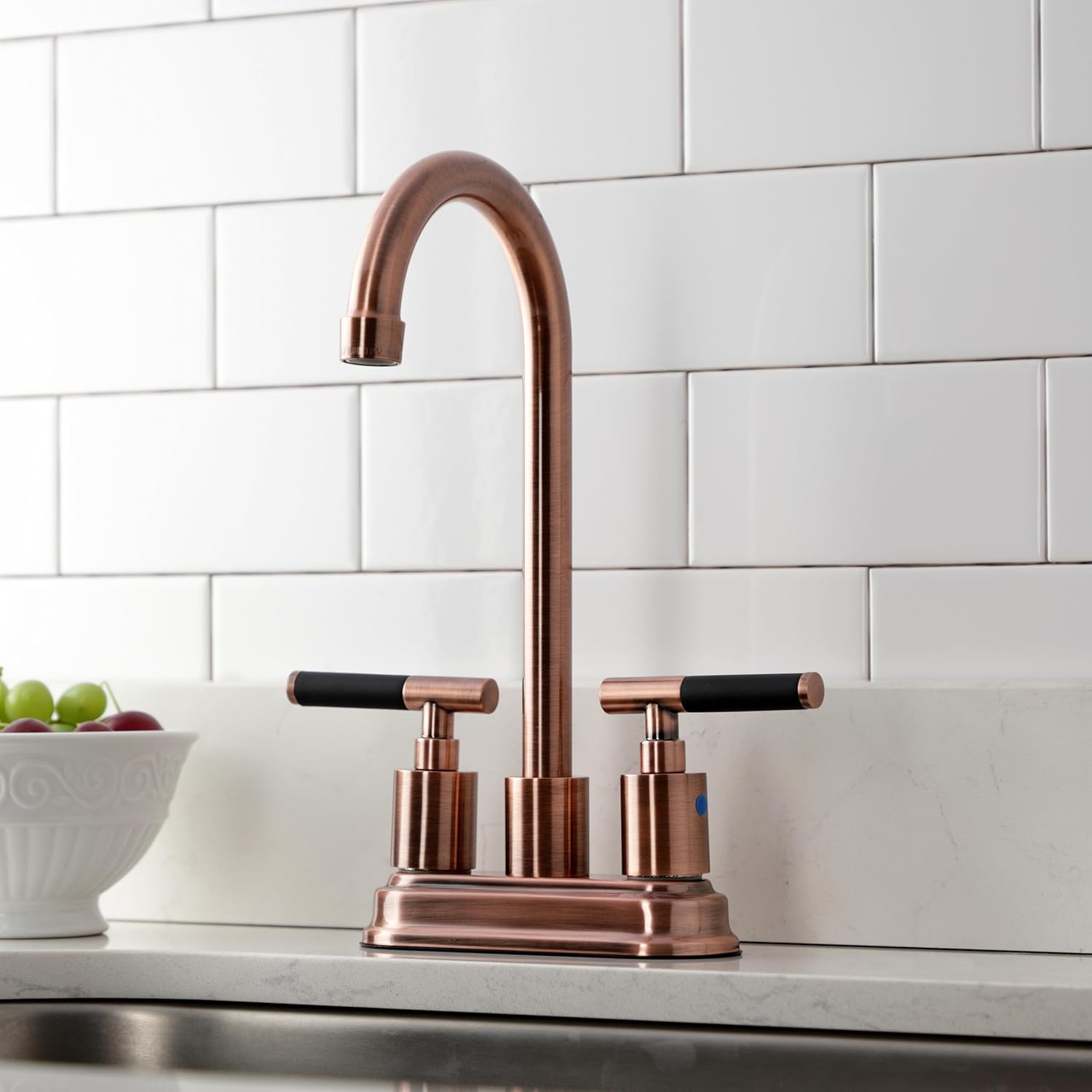 This faucet tastefully interweaves top-notch ergonomic design and the sheen of contemporary simplicity with its black silicone rubber coated handles and cylindrical facets. Add sleek, contemporary style to your bar setup with this faucet. Ideal for preparing food and cleanup, the high spout will easily allow for a variety of tasks.