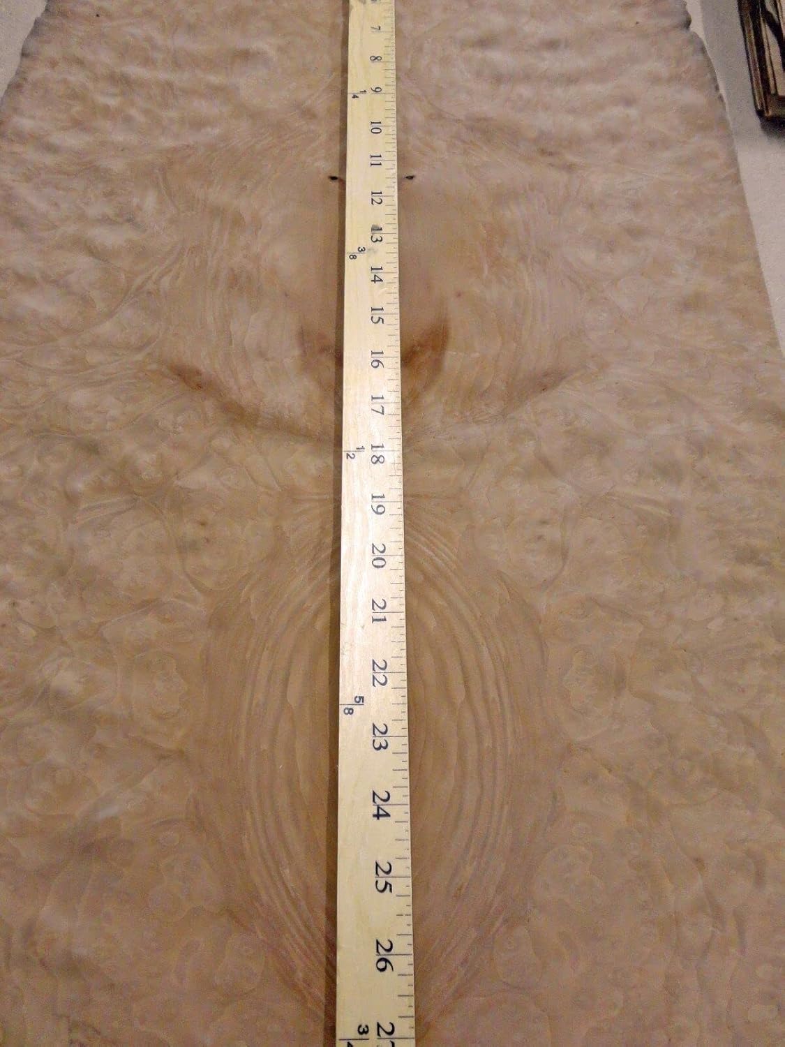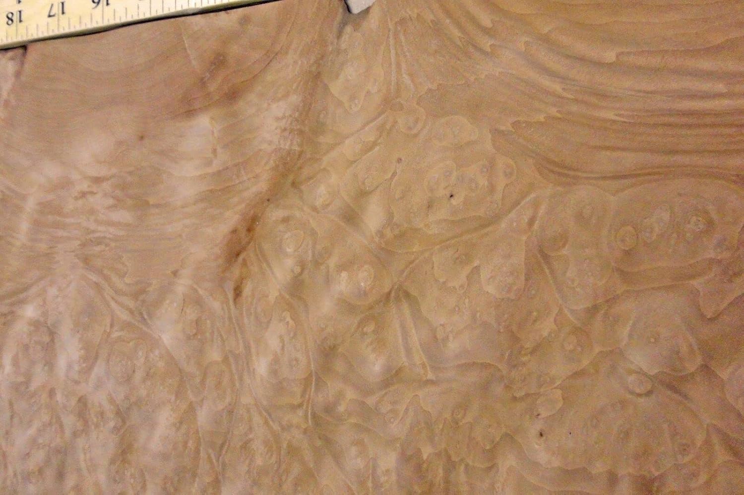 Madrone Burl wood veneer 8" x 21" with no backing raw veneer 1/42" thickness. One piece per price. All pieces sequential and matching AA quality grade. As with most veneers, raw veneer tends to wrinkle some and will require some flattening, but it will lay perfectly flat. It can be done with veneer softener (shown - sold separately). Other sizes and backed sheets are available. Pictu res show s ome pieces with finish or water on them. All taken from the same lot of veneer. Most wood veneer will darken and show a deeper beauty of grain when finished. Some pictures may show how multiple pieces can be laid out and made into bigger pieces with striking patterns. Trust the experience, knowledge, and reputation that has served the wood industry and novices since 1995. About pictures : Most pictures have been temporarily wet on the lower portion of the veneer to show what the grain may look like when finish is added. Color adjustments have been made to show the color as best as is possible. It is impossible to get photos exactly correct in color, but we have made an effort to do so. Backed products come with complete application instructions that are simple and clear. For raw veneer or un-backed products, we suggest using the Internet to see what advice is available as opinions vary on the best way to handle that product. Below is general information for most of our products. Make sure you check the listing to see which applies to the above product in particular. Thickness : (will not always be exactly correct, but relatively close) Paper-backed veneers = 1/40” Wood-backed veneers = 1/25” Raw plain veneer with no backing = 1/32”-1/42” How to cut : generally cut with a razor/box knife or similar tools and some type of straight edge. How to apply : Paper-backed and wood-backed veneers are generally applied with contact cement. Raw plain veneer is applied with white or yellow wood glue and must hav
