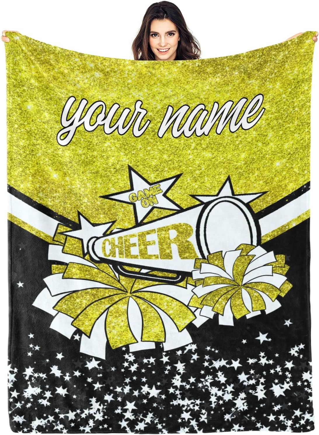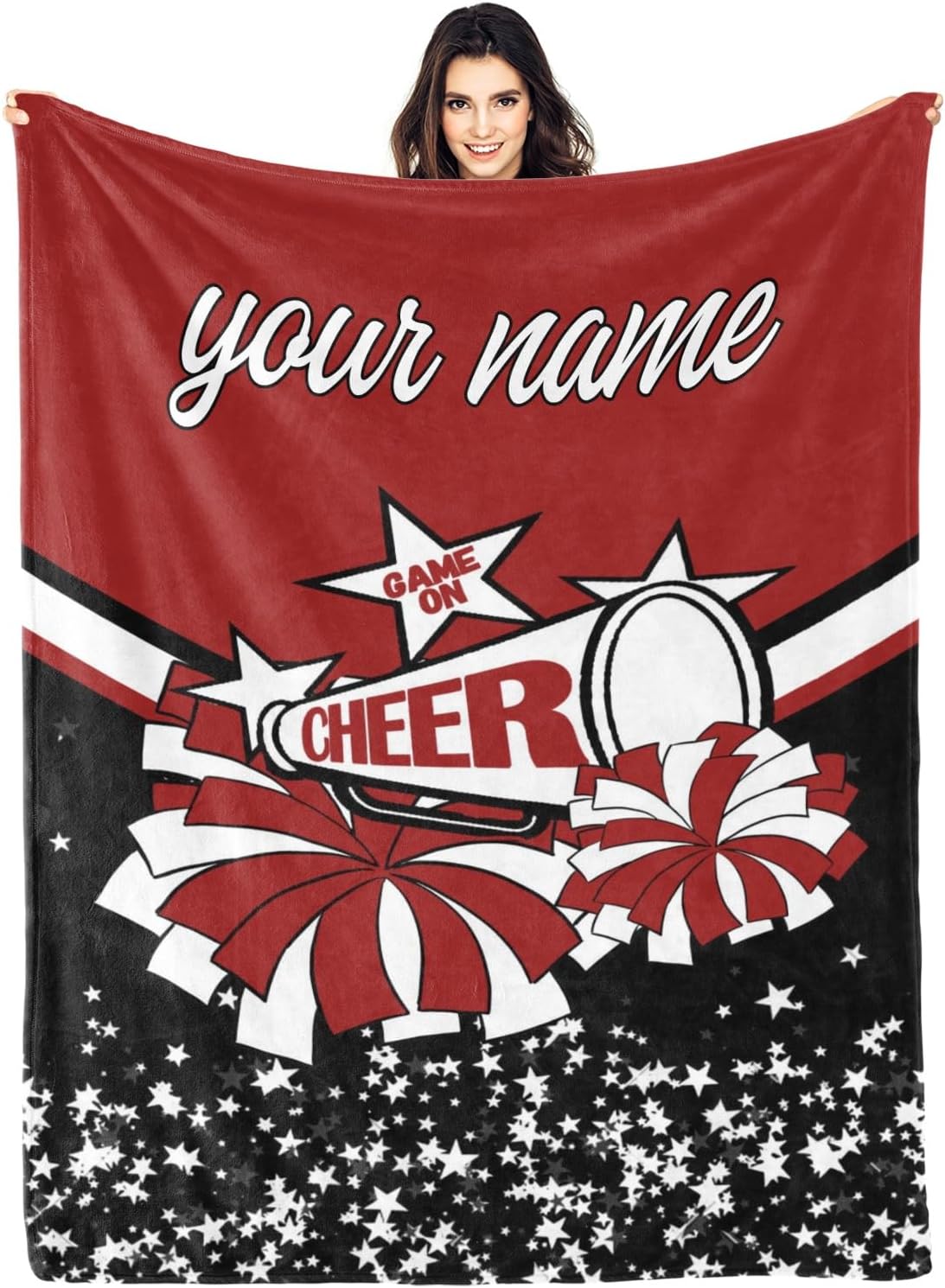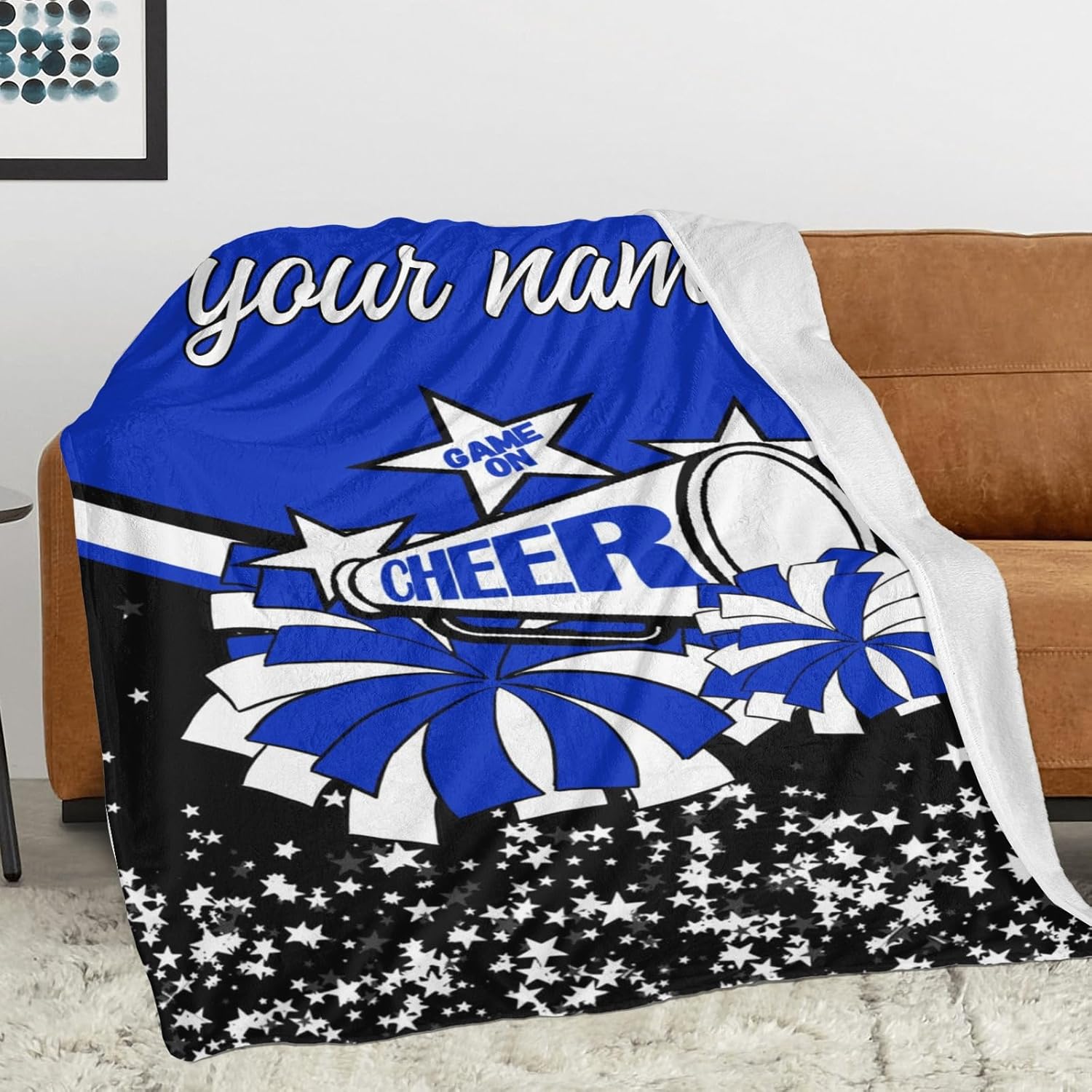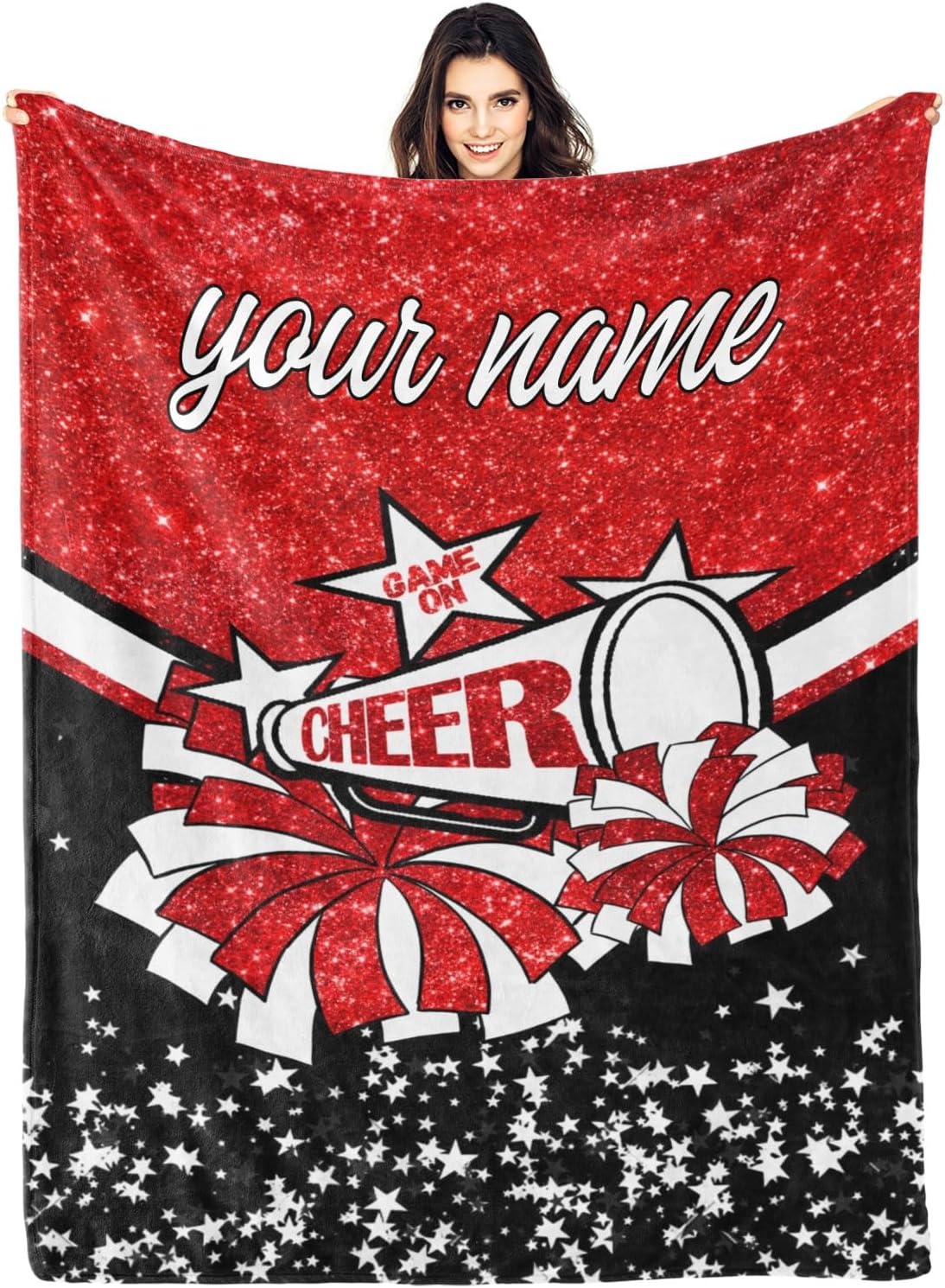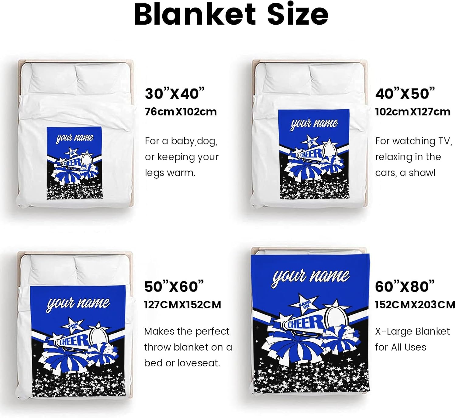 Personalized blankets with customizable names, comfortable blankets are a souvenir of love for parents, family, friends, children, and babies, commemorating special events and precious moments, a precious and perfect gift!! Personalized Cheer blanket Size:30x40 inch/40x50inch/50x60inch/60x80inch. Material:100% polyester fiber.Lightweight blanket,soft and comfortable delicate feel. Applicable to:This four-season cheerleading blanket is an excellent choice for your bedding, sofa, bedroom, living room, guest room, children's room, RV, holiday home or pet bed. It is also an ideal choice for family outdoor activities, sports, camping and beaches. Comfortable:Perfect to use when cold nights watching TV,reading a book on a coach, watching a movie or fireside chats.Pamper yourself with this blanket and stay cozy on cold days and nights.Being highly durable,lightweight,and easy to care for fabric. Easy Care:Easy to clean,machine washable hand washable,do not use bleach.quick drying, easy to care for, durable, without fear of fading colors or shrinkage Lightweight, breathable, non shedding.