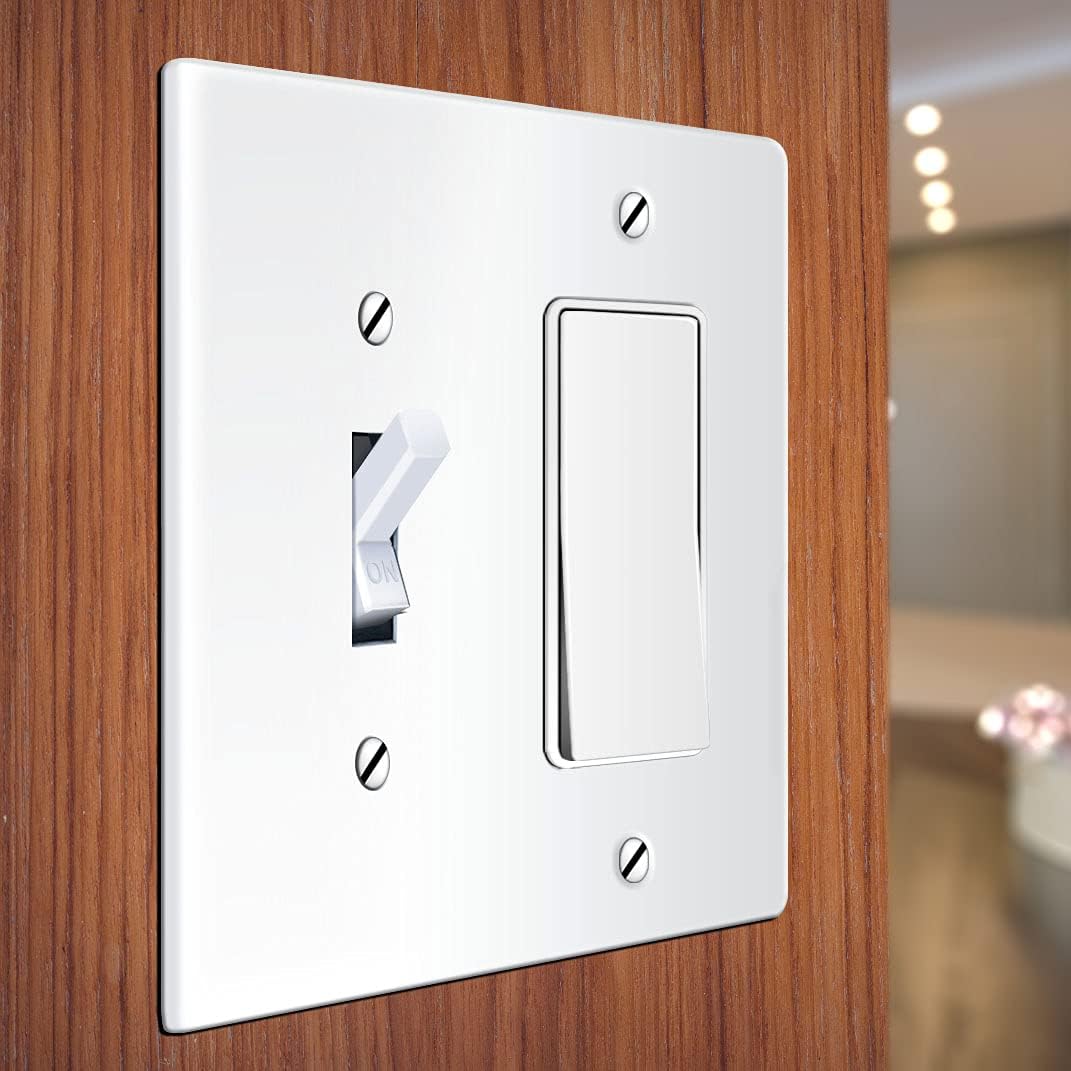- Product size: 2-Gang 1-Toggle 1-Decora switch cover: 4.56 inches x 4.5 inches (11.59 cm x 11.43 cm) - Matching screws included - Package included: 1 Pc Blank Wall Plate Cover