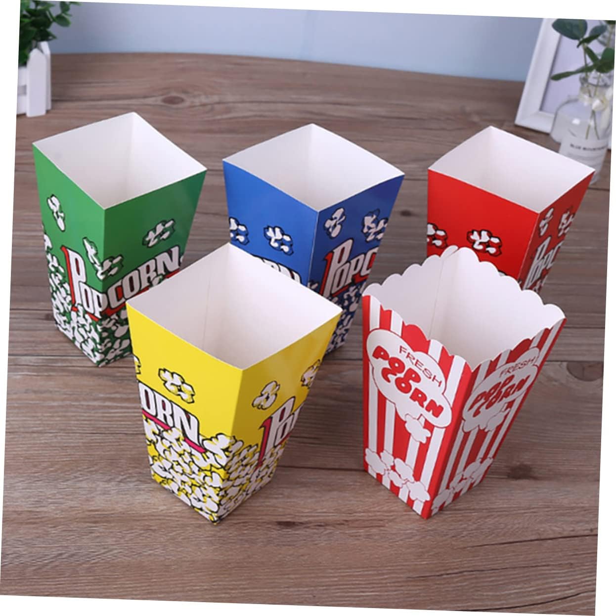 • Popcorn paper containers-- they are folding and disposable, the product you received is flat, they need to be folded along the folding line ,classic popcorn containers