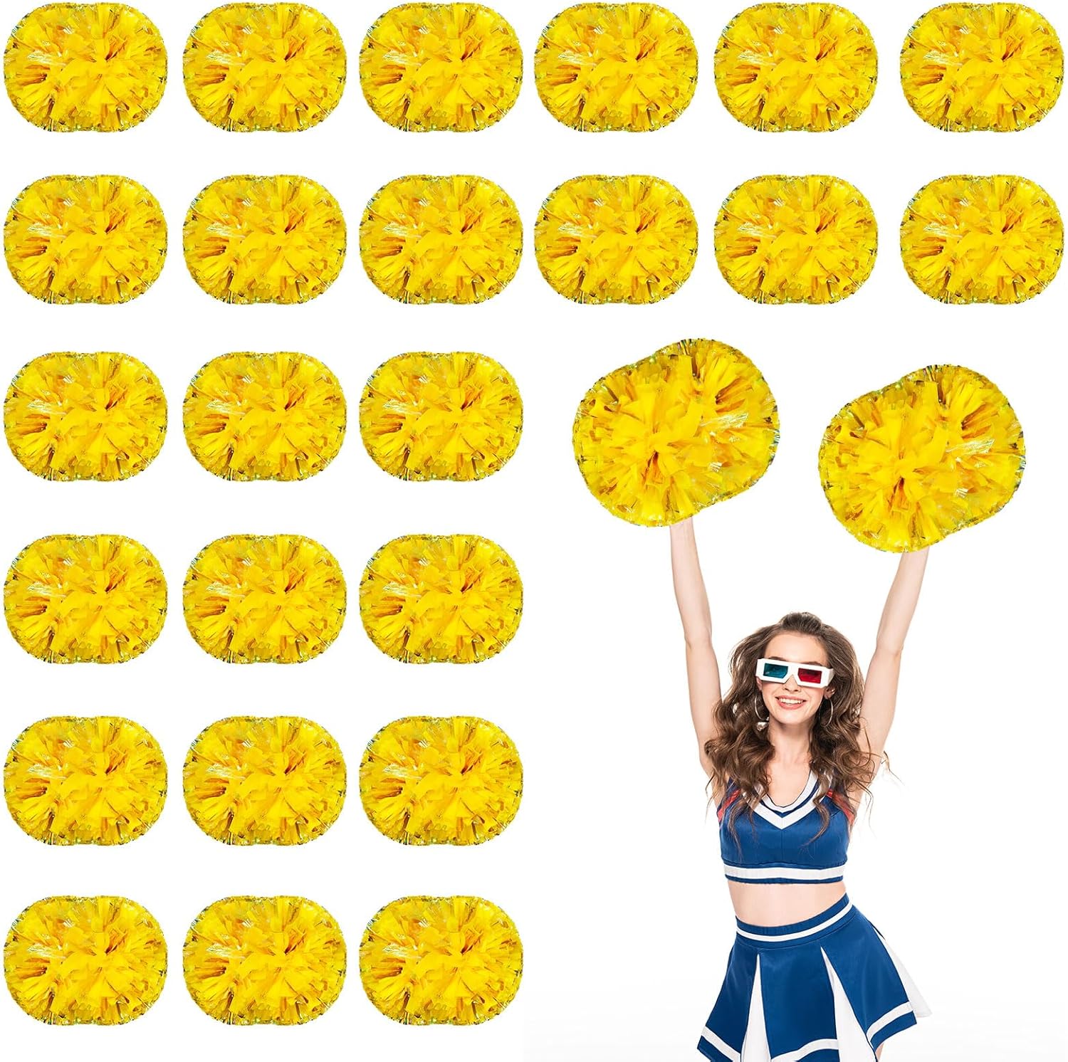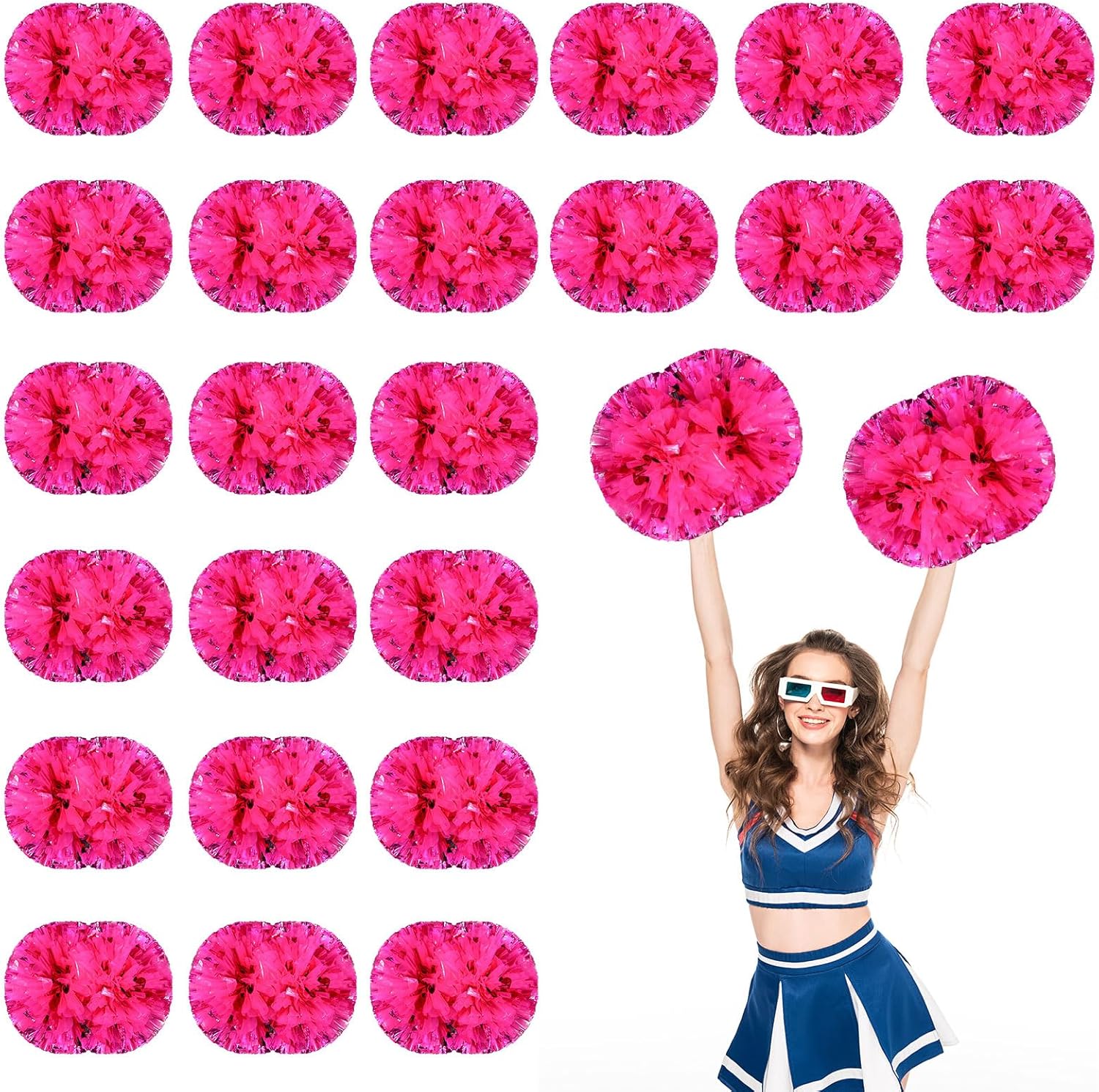 Product descriptionConvenient use: The cheer plastic pompoms bulk have rubber bands on both sides to hold them in place, to use, just remove the rubber bands and shake them a few times to puff them up. Specifications: Material: metal foil, plastic Size: 30 cm/ 11.8 inches