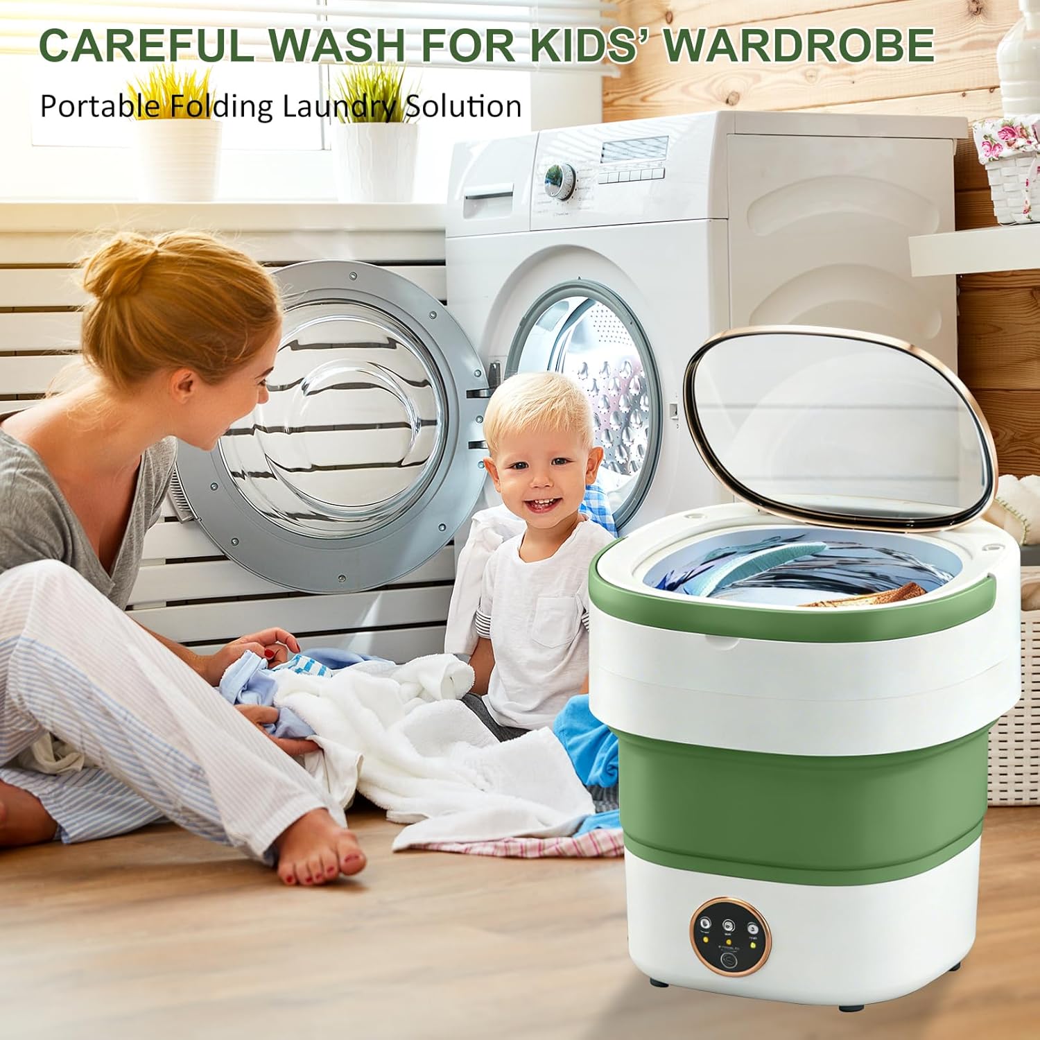 Portable Washing Machine 20L, Small Foldable Washer with Spin Basket, 3 Mode Deep Clean — Mini Laundry Machine for Travel, Dorms, Camping, Ideal for Baby Clothes, Underwear, Socks Green